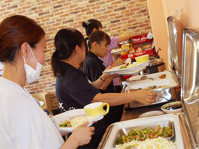 昼食は1食200円のビュッフェスタイルで提供しています。 ※現在感染症対策のため休止中